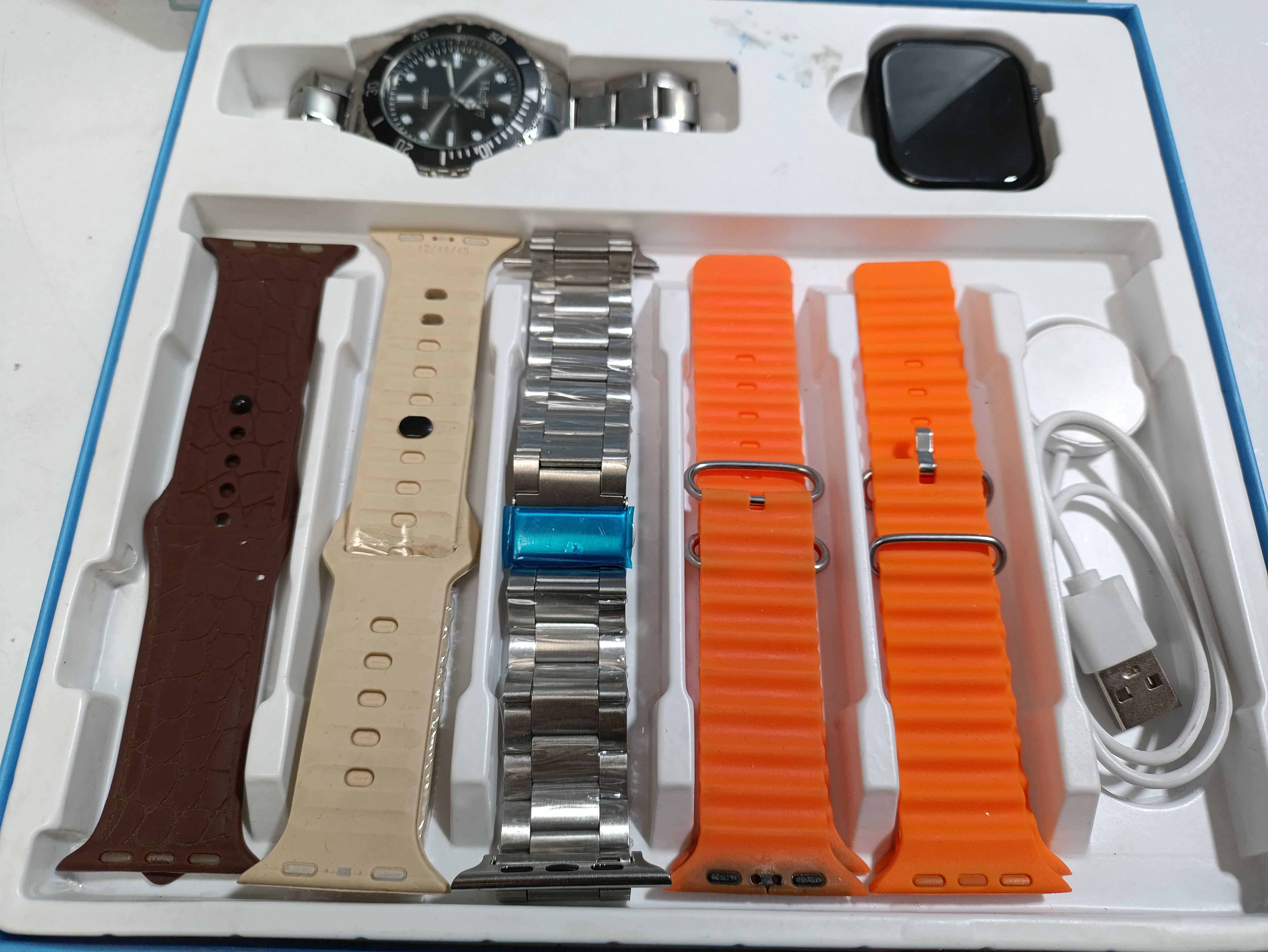 دارای 5بند 4بند سیلیکونی و یک بند فلزی و یک ساعت اضافی